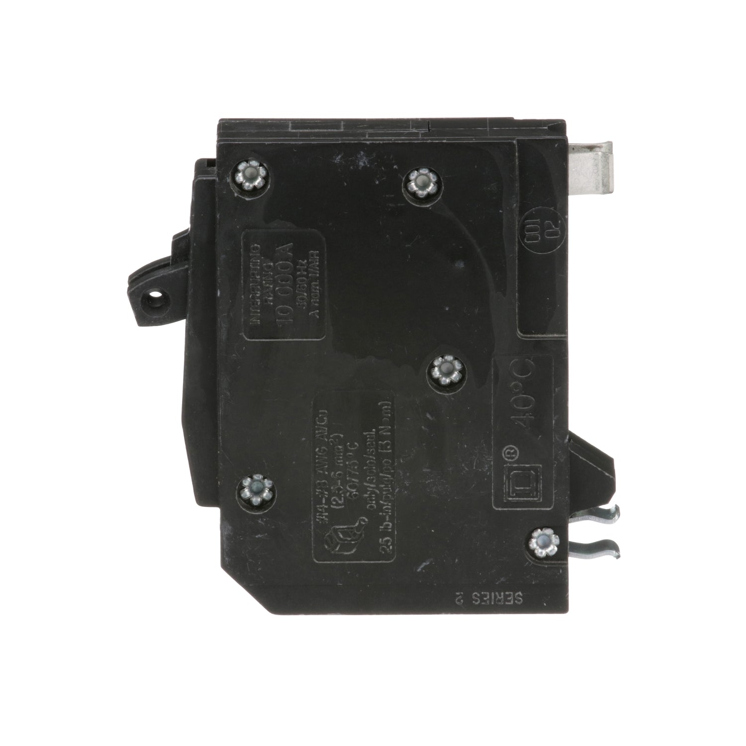 QO and QOB one, two and three pole thermal magnetic circuit breakers provide overcurrent protection and switching on ac and dc systems. These circuit breakers have an over center, trip free toggle mechanism with quick make, quick break action and positive handle indication. They also have VisiTrip trip indication, which provides a visual indication that the circuit breaker has tripped and interrupted the circuit. A full line of features and factory installed accessories are also available such as shunt trips, auxiliary switches and alarm switches. This QO tandem mini circuit breaker has 2 one pole at 15A for 120/240VAC. This unit provides 10kA breaking capacity and plug in mounting. QO circuit breakers are UL Listed under UL File E84967 and are CSA Certified under CSA Master Contract 153555. QO circuit breakers are UL Listed under UL File E84967 and are CSA Certified under CSA Master Contract 153555.