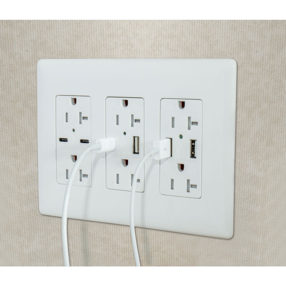 USB Charger Duplex Receptacle, 20A 125V,2-Pole 3-Wire Grounding, 5-20R, 2) 5A USB Ports, White