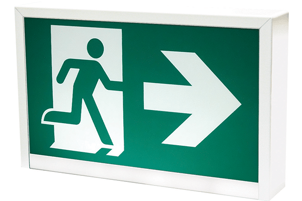 STANPRO Steel LED Running Man Exit Sign – White, AC/DC, Model RMS0WH-IB1