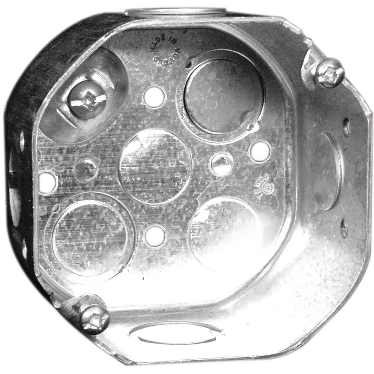 Hubbell 4 in. Octagon Box, 2-1/8 in. deep, 21 cu. in., 1/2 & 3/4 in. Ko, Model 54171K