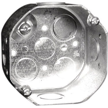 4 In. Octagon Box, 2-1/8 in. Deep, 21 Cu. In., with Raised Ground Screw, with Concentric, 1/2 & 3/4 in. KO,