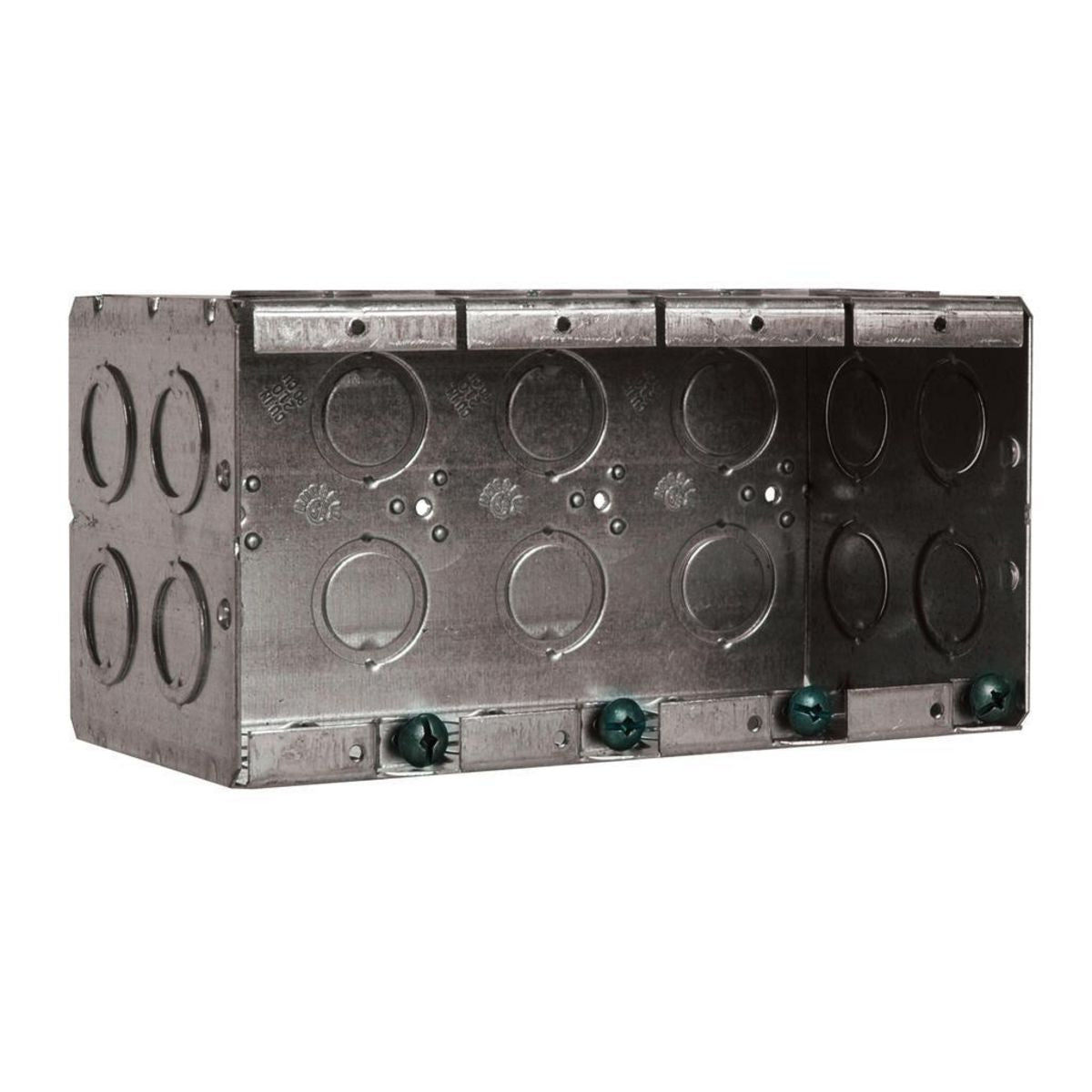 Masonry Box, 3-1/2 in. Deep, 84 Cu. In., 4-Gang Masonry Box, 7-7/16 in. Width, 3-3/4 Height, Raised ground screw, with Concentric, 1/2 & 3/4 in. KO