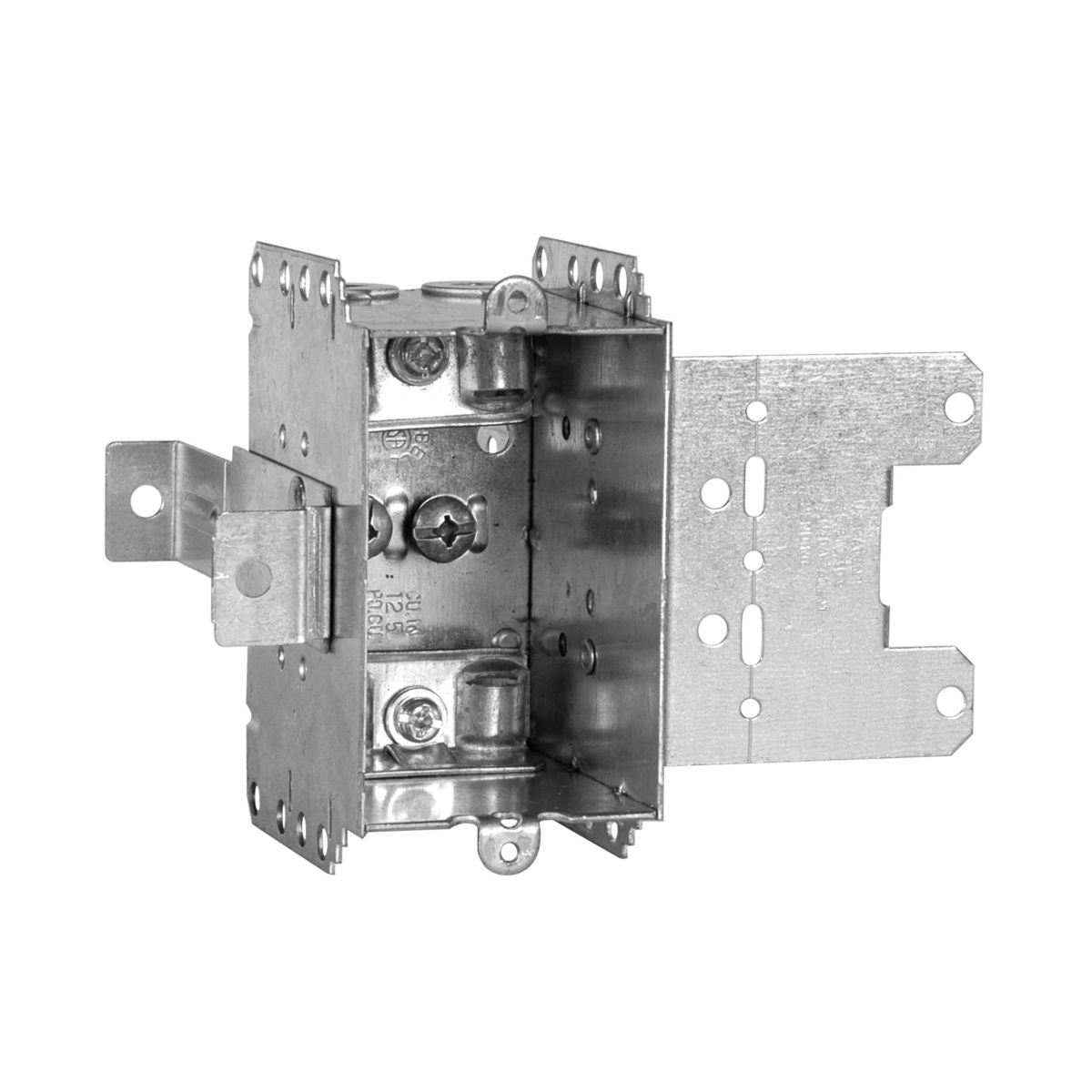 Hubbell Steel Stud Device Box, 12.5 cu. in., Msb Metal Stud Bracket, 2-3/8 & 3-5/8 Stud Size, Pryouts Nmd90/Ac90, Model 2104MSBU