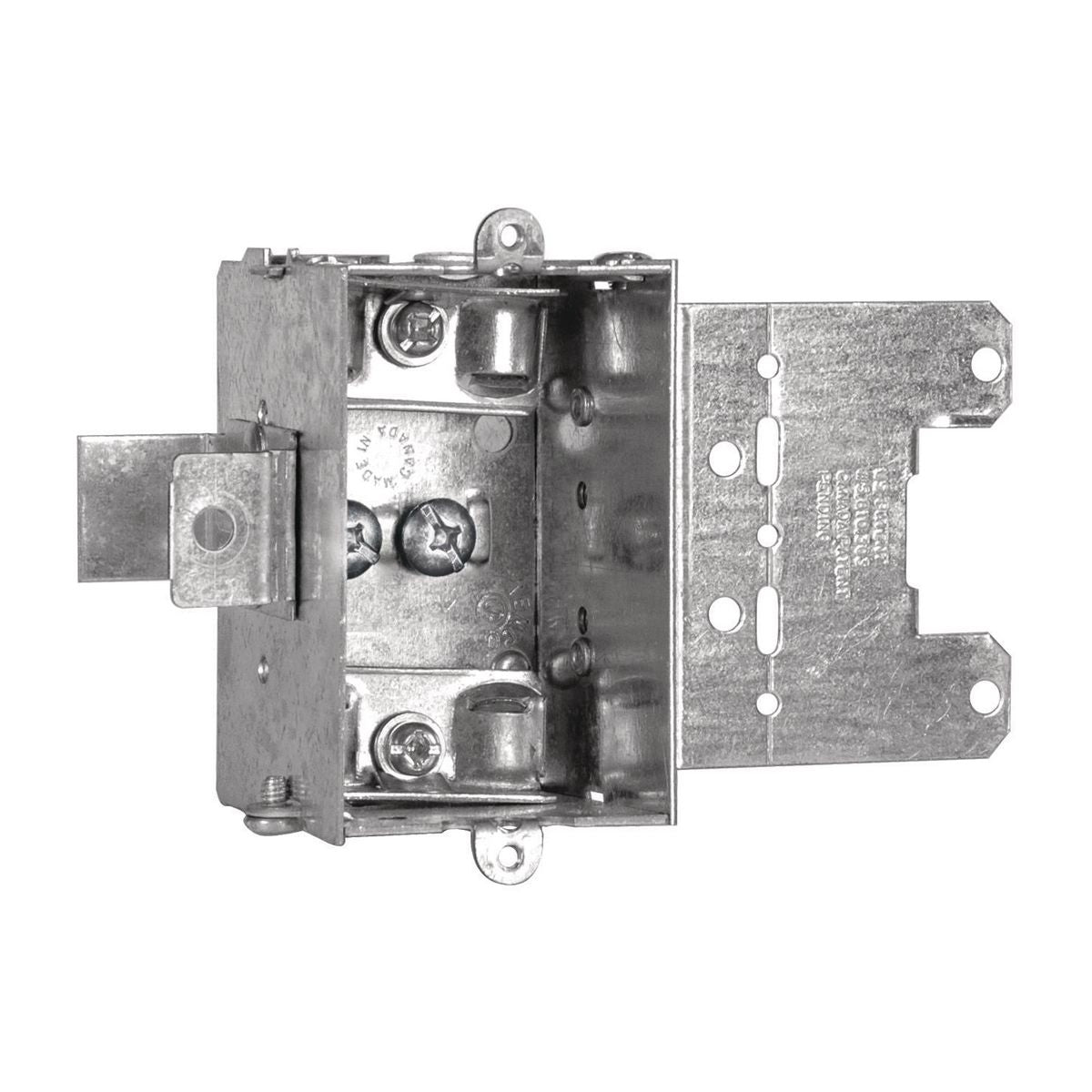 Steel Stud Device Box, Gangable, 2 in. Deep, 10 Cu. In., with Raised Ground Screw, MSBS Bracket, 1-5/8 & 2-3/8 in. Stud Size, Cable Pryouts Ends, NMD90 and AC90