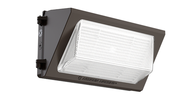 High-output wall pack with adjustable lumens (8200–16100) and 3 CCTs. Features a dusk-to-dawn photocell and classic design. Perfect for building exteriors and loading docks.