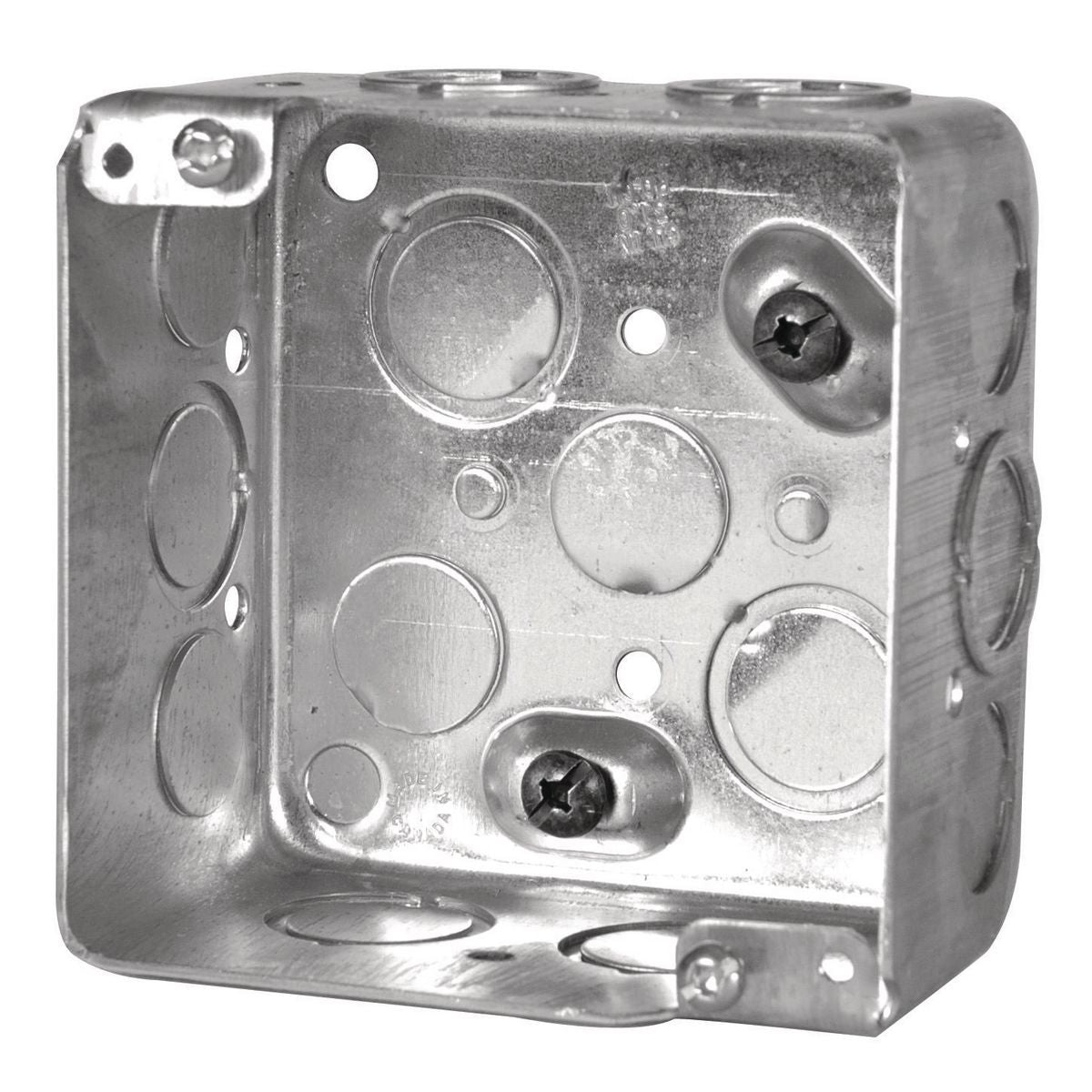 4 In. Square Box, 2-1/8 in. Deep, 30 Cu. In., with Raised Ground Screw, with Concentric, 1/2 & 3/4 in. KO .