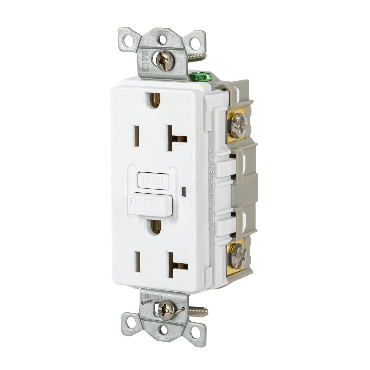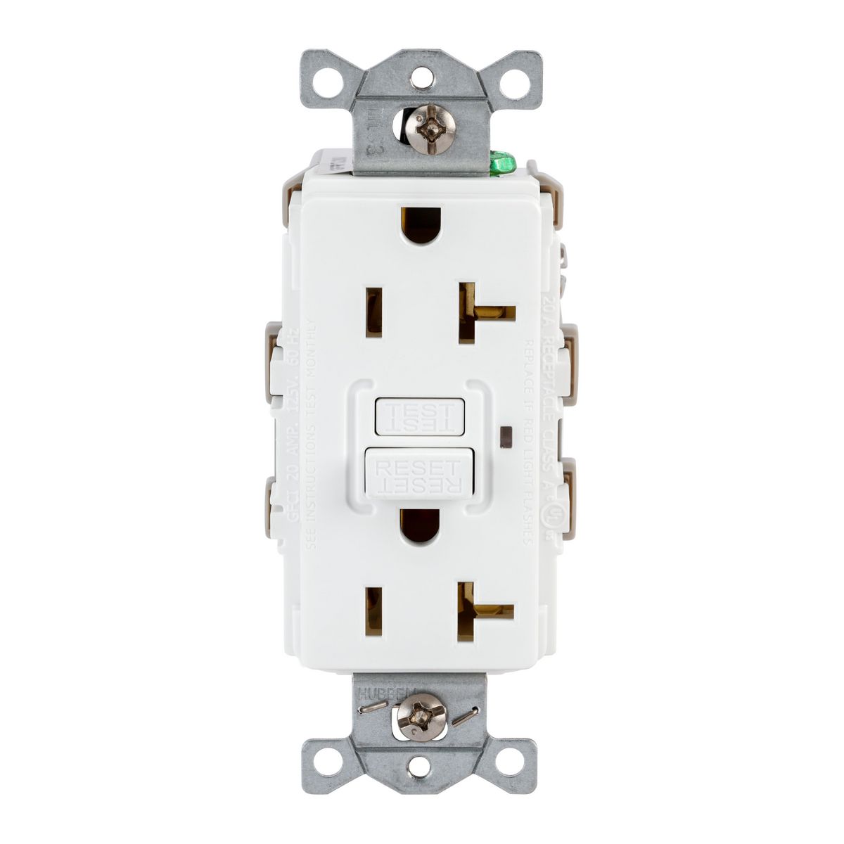 Hubbell Power Protection Devices, Receptacle, Self Test, GFCI, 20A 125V, 2-Pole 3-Wire Grounding, 5-20R, White, Model GFR20W