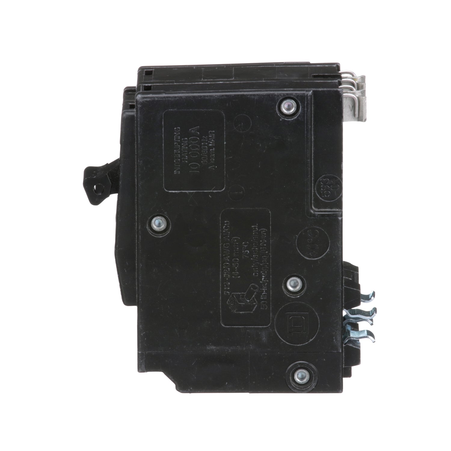 QO and QOB one, two and three pole thermal magnetic circuit breakers provide overcurrent protection and switching on ac and dc systems. These circuit breakers have an over center, trip free toggle mechanism with quick make, quick break action and positive handle indication. They also have VisiTrip trip indication, which provides a visual indication that the circuit breaker has tripped and interrupted the circuit. A full line of features and factory installed accessories are also available such as shunt trips, auxiliary switches and alarm switches. This 2 pole QO circuit breaker is rated at 100A at 120/240VAC. This unit provides 10kA breaking capacity and plug in mounting. QO circuit breakers are UL Listed under UL File E84967 and are CSA Certified under CSA Master Contract 153555. QO circuit breakers are UL Listed under UL File E84967 and are CSA Certified under CSA Master Contract 153555.